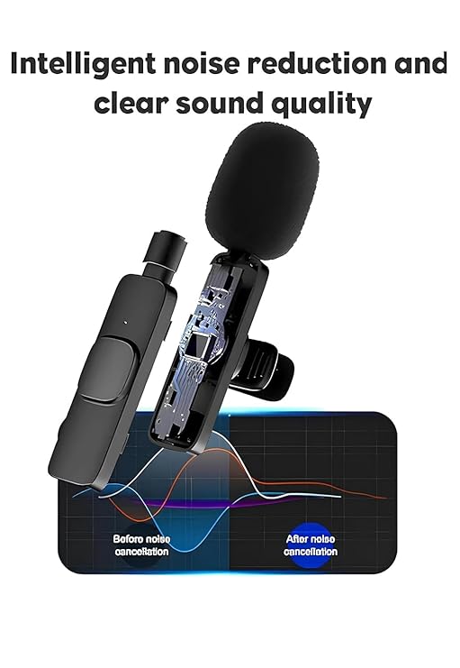 Professional Wireless Microphone System With Noise Cancelation for Apple & Android Mobiles, Camcorder, Smartphone & Tablet