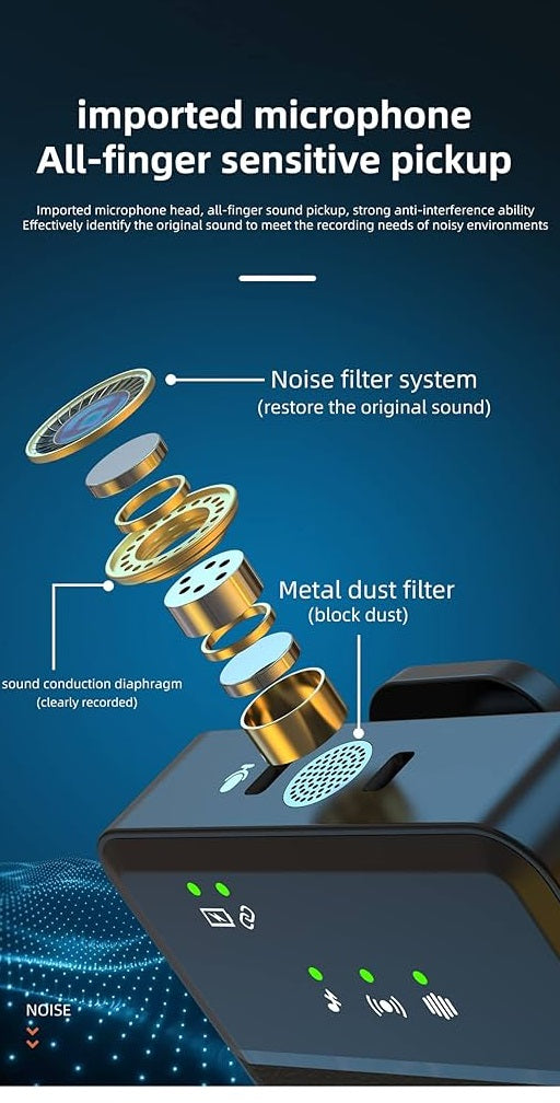 SX9 Double Wireless Microphone 1 Controller 2 Microphone Collar Mic Intelligent Noise Cancellation