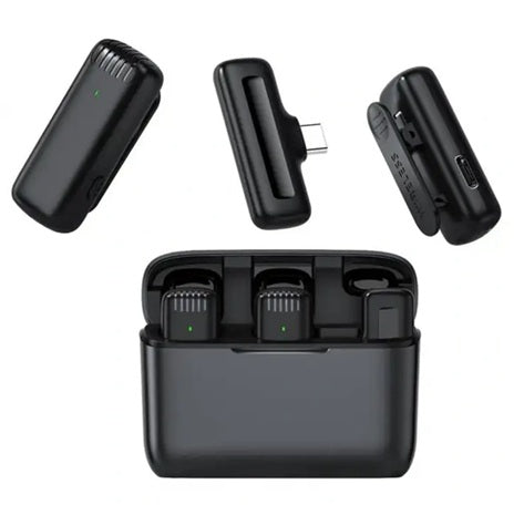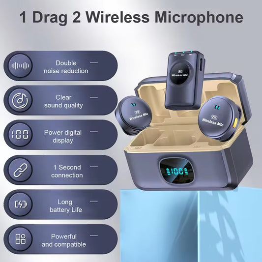 SX9 Double Wireless Microphone 1 Controller 2 Microphone Collar Mic Intelligent Noise Cancellation
