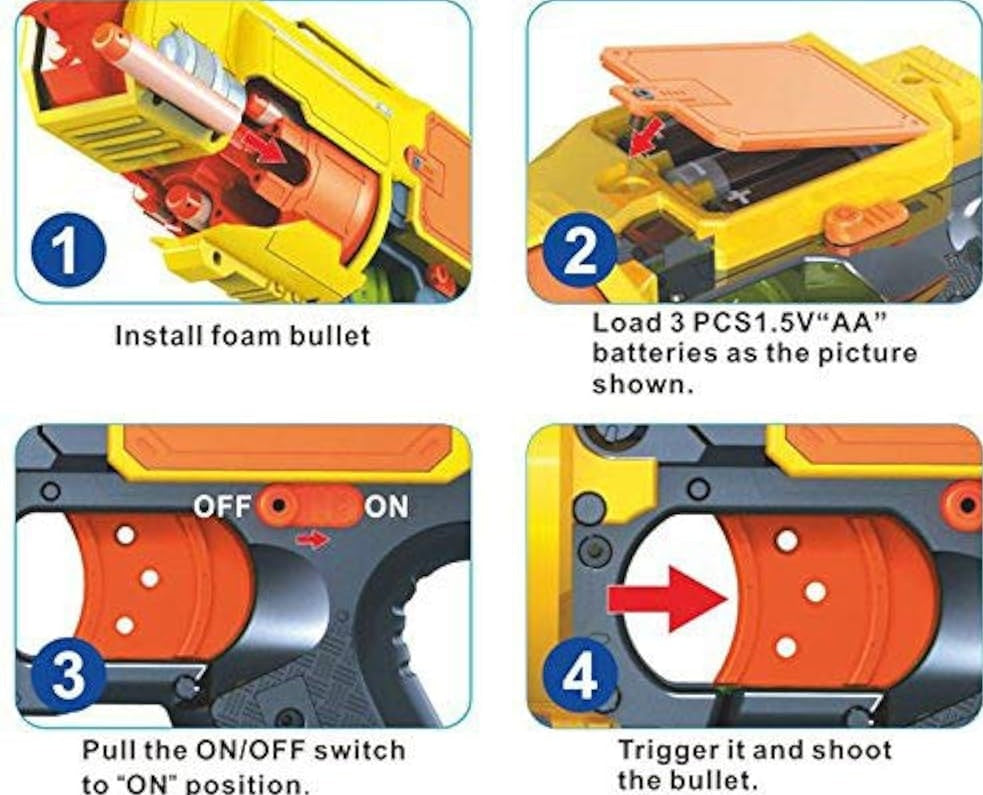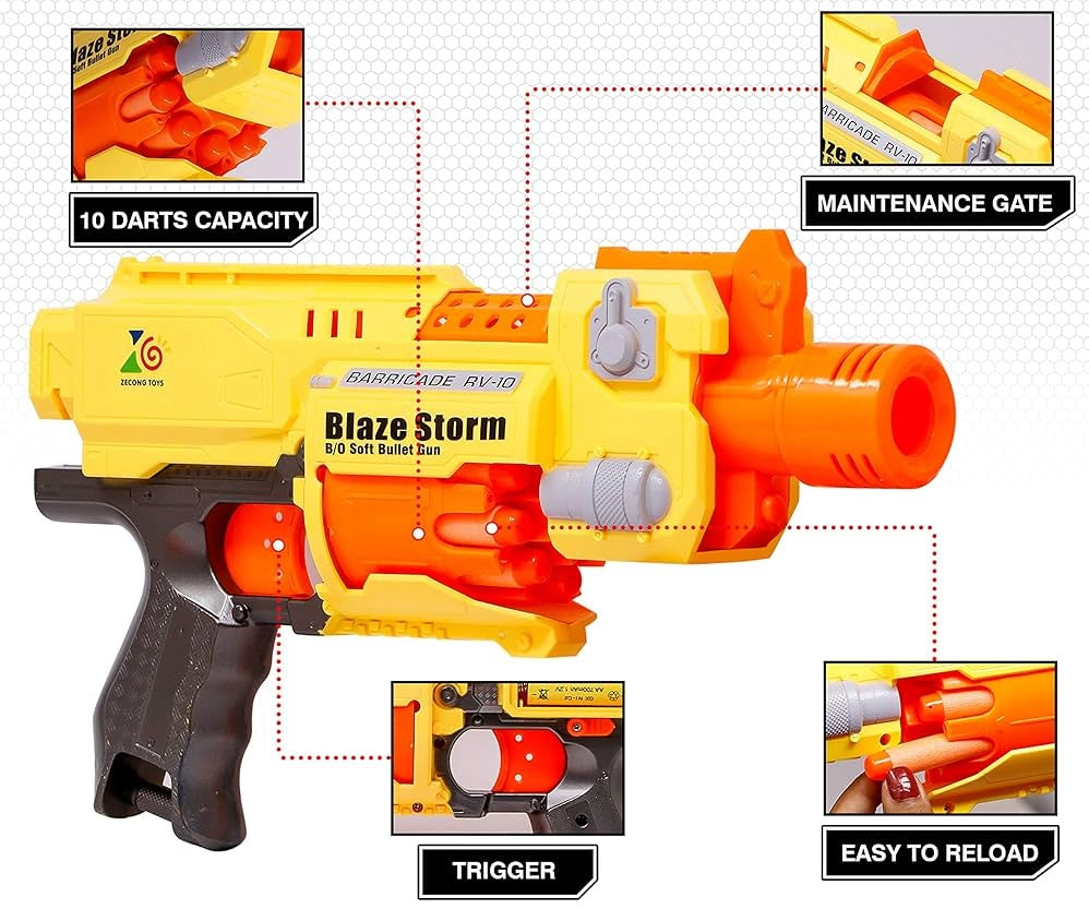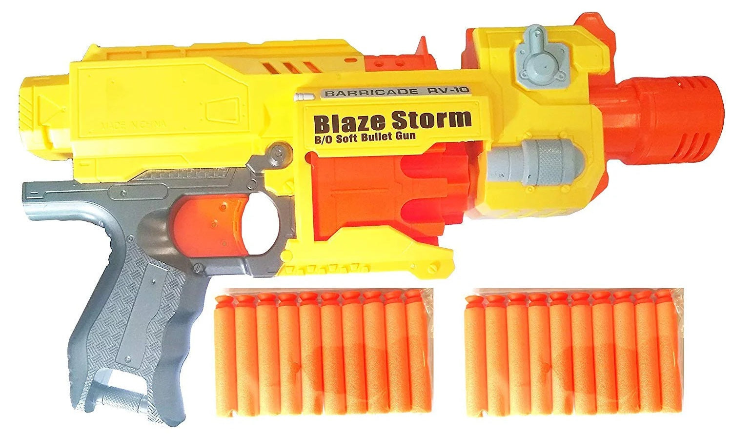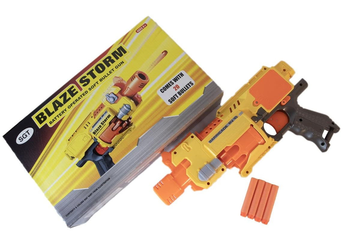 Electronic Battery Operated Blaze Storm Soft Bullet Gun 20 Soft Bullets and 10 Form Dart Magazine Drum Included