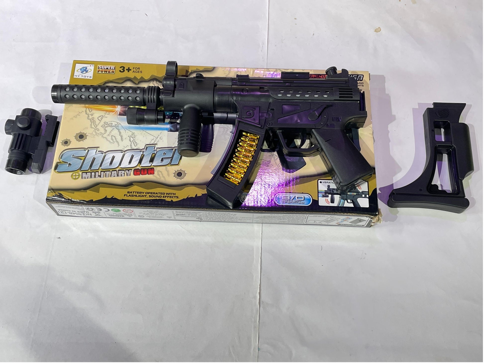 Toy Gun for kids great for Soldier Army Military . This durable plastic toy Gun emits combat sounds lights and vibration