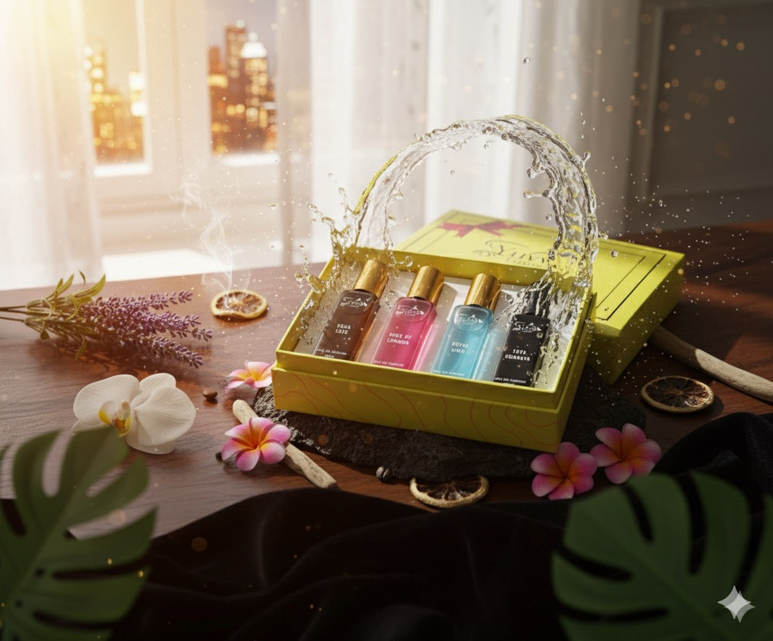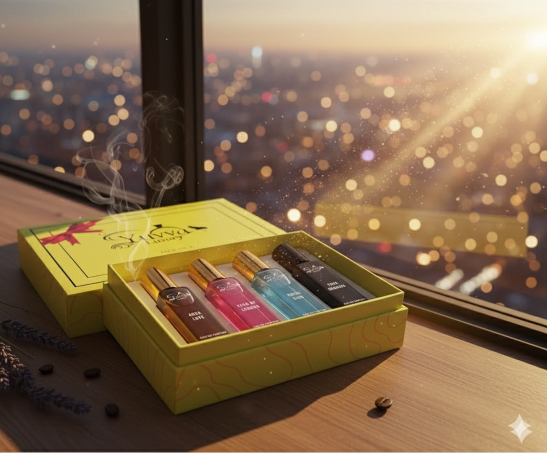 - With its diverse range of scents, this perfume gift set takes you on a fragrant journey, from the exotic and sweet aroma of white oud to the fresh and aquatic scent of skai aquatic.
